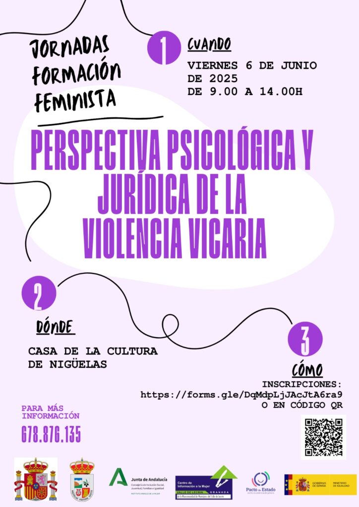 La Casa de la Cultura de Nigüelas va a acoger, el próximo viernes 6 de junio, una Jornada de Formación que aboradará desde una perspectiva psicológica y jurídica la violencia vicaria, la forma extrema de violencia machista que utiliza a hijas e hijos como instrumento para dañar a las madres.