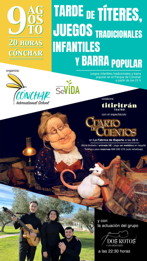 Este evento está organizado por Cónchar International School y la Cooperativa SéVIDA, con la colaboración de Titiritrán Teatro, y se enmarca dentro del programa de la Semana Cultural, que año tras año sigue consolidándose como uno de los momentos más esperados del verano en el Valle de Lecrín.
