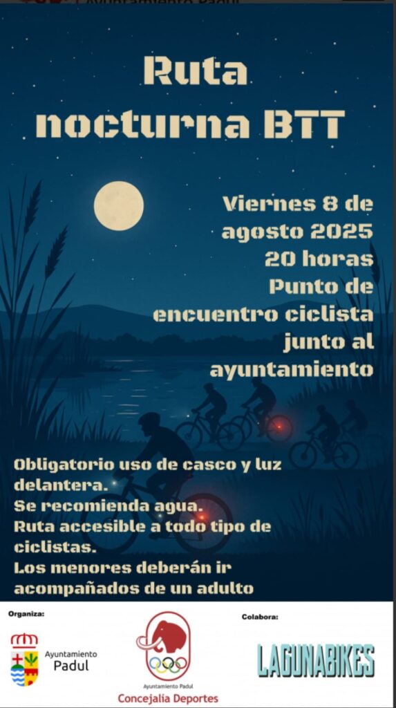 El deporte y la naturaleza se darán la mano este viernes 8 de agosto en una nueva edición de la Ruta Nocturna de Ciclismo MTB, organizada por el Ayuntamiento de Padul en colaboración con el Club Laguna Bikes.