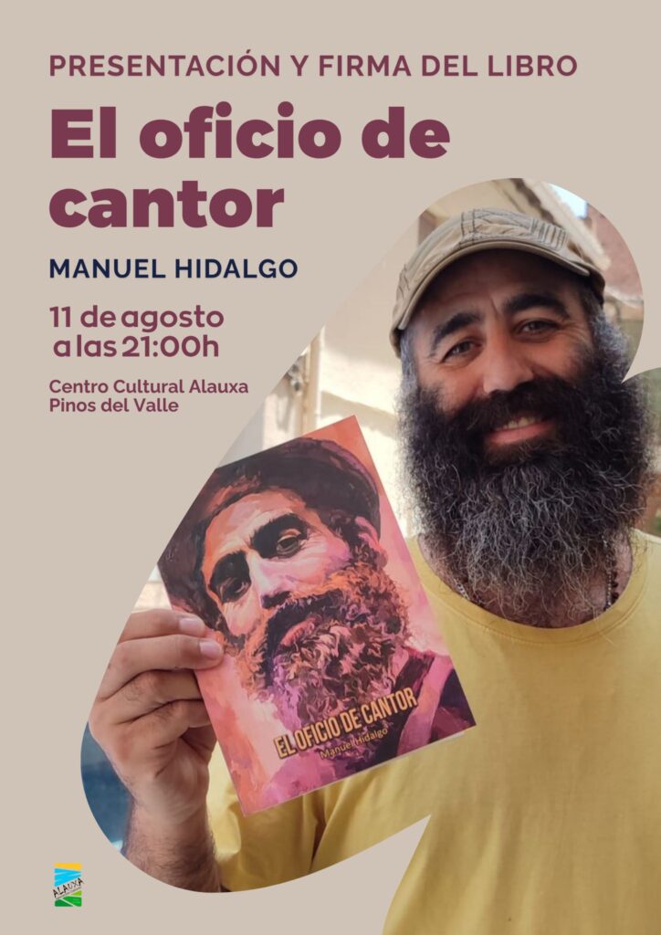 El próximo 11 de agosto a las 21:00h Manuel Hidalgo presentará su último libro “El oficio de cantor” en el Centro Cultural Alauxa, en Pinos del Valle. El cantautor paduleño compartirá sus reflexiones sobre escritura, música y vida y firmará este libro surgido de un proceso de “escarbar en el alma para encontrar y sacar las espinas”.