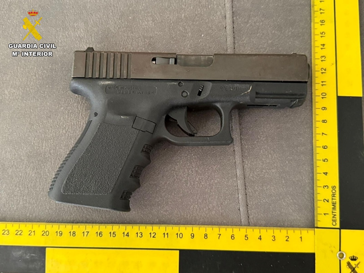La Guardia Civil tras obtener indicios suficientes que constatasen la veracidad de esta información, solicitó un mandamiento judicial para acceder a la vivienda, y tras llevar a cabo un registro exhaustivo de la misma, localizaron en su interior 289 plantas de cannabis sativa en avanzado estado de floración, 10 gramos de MDMA, 6 trozos de hachís con un peso de 2,25 kilos, un arma corta marca GLOCK de 9 mm con el número de serie borrado oculta tras un hueco habilitado tras el microondas, un carabina de aire comprimido, alrededor de 250 cartuchos de munición del calibre 12 y de 9 mm, y una pistola táser con forma de puño americano.