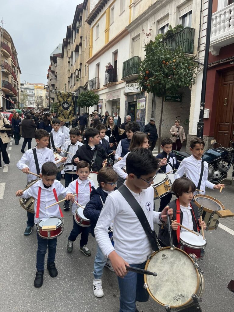 Durante la tarde, de ayer mantillas penitentes, pequeños costaleros, tambores y pasos infantiles recorrieron las calles del centro del municipio, recreando las imágenes de Nuestro Padre Jesús Nazareno y la Virgen de los Dolores. La iniciativa contó con la participación de los niños que se preparan para recibir los sacramentos de la Eucaristía y la Confirmación, acompañados en todo momento por sus catequistas.