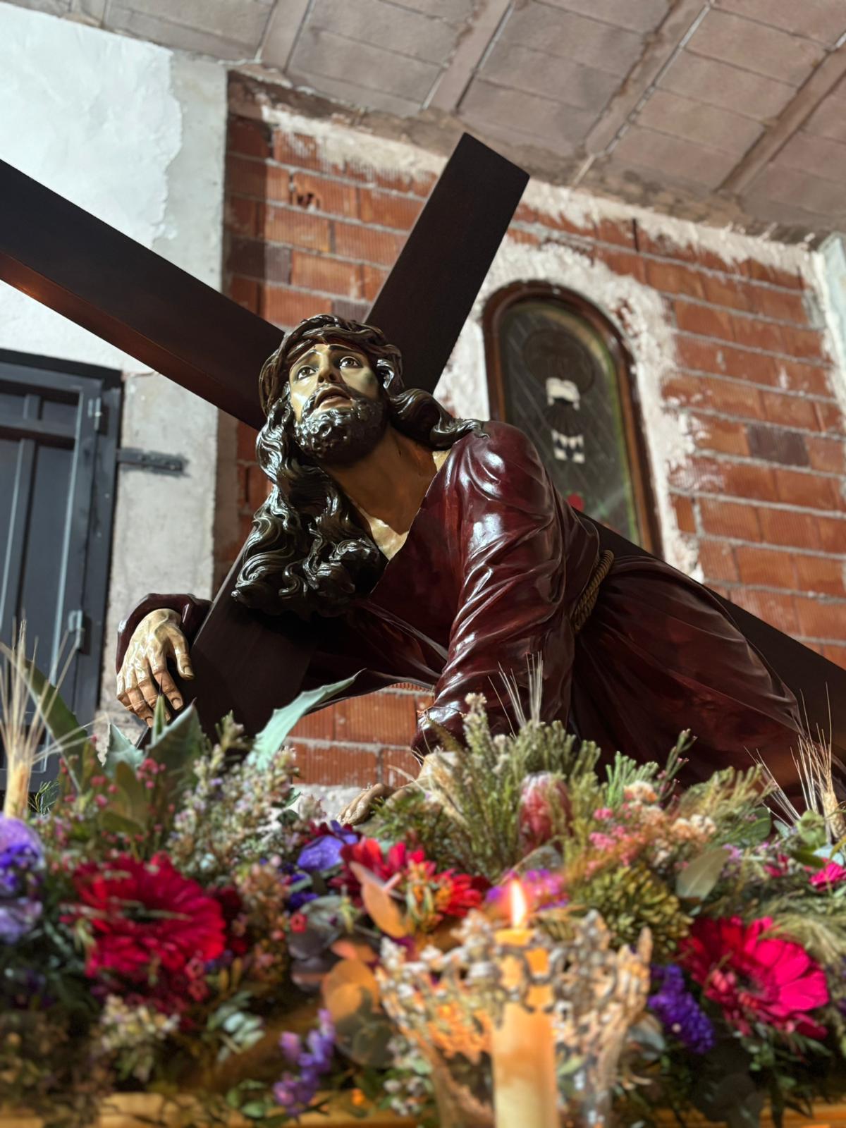 Señor de las Tres Caídas en su nueva Casa de Hermandad (aún por finalizar) que estrena este año