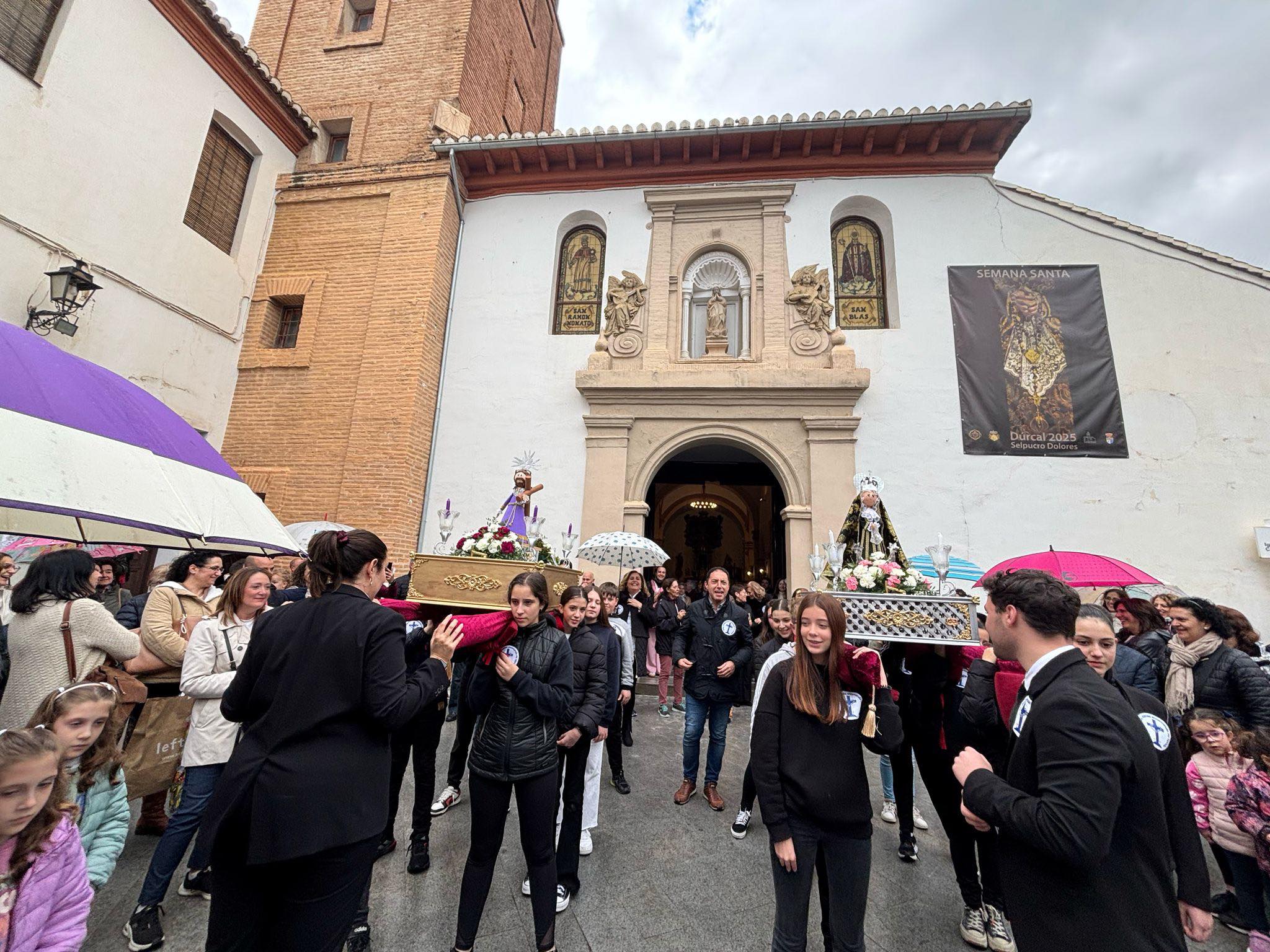 La lluvia amenazaba la celebración, el pasado viernes, de la primera procesión infantil de Semana Santa organizada por la parroquia Inmaculada Concepción de Dúrcal, “pero gracias A Dios, ¡Milagro!, el tiempo nos dio una tregua de 45 minutos y pudimos realizar esta primera procesión infantil con los niños de catequesis...