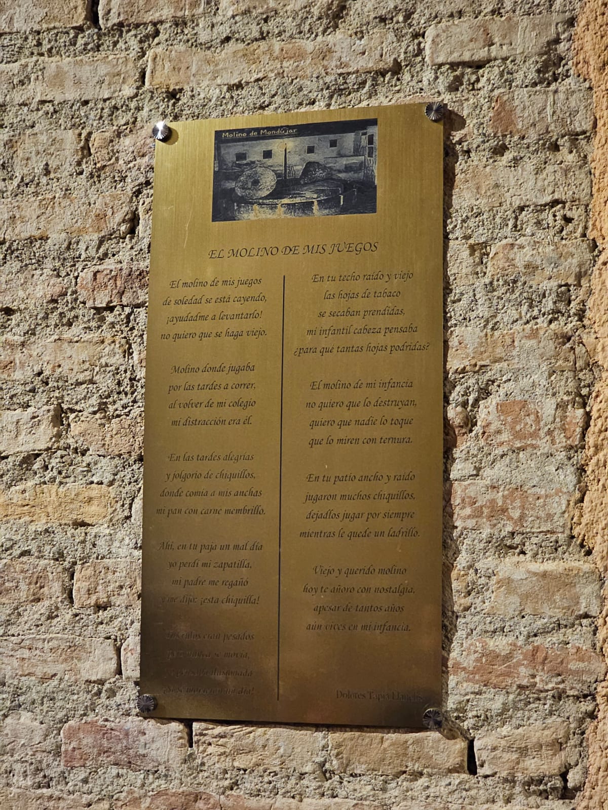 El patio del molino de Mondújar fue para Dolores Tapia Llanelis su lugar preferido de juegos durante su niñez. Tanto que le dedicó un precioso poema que desde el pasado sábado ha quedado inmortalizado en una placa que el ayuntamiento ha colocado a la entrada del edificio en su honor....